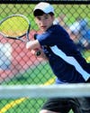 Henry Tiberio, the North Shore's Tennis Legend, came to the match, and told me that he wanted to make his way around to see all the matches. He did see some of them, but he said he was fascinated by Matt's level of play and watched him for the most part. Henry noted how Matt is able to, by precise shot selection, move his opponent into a vulnerable position, "..., like a pro, ...", to quote him, and finish the point again and again. "Very impressive," he said, "considering he is a freshman." Victory to Jacobs: 6 - 0, 6 - 2.
