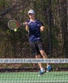 The Big Blue Machine that the Swampscott Boy's Varsity Tennis Team is becoming rolled on today at The Middle School courts. Following last Thursday's speed bump in the form of the LC no - show, this Monday turned out to be sunny and warmer and a great day for Big Blue to play. We hosted Coach Devin Carr's Beverly Varsity. They are a well coached group with talent, but the burgeoning flywheel, that is the Big Blue Varsity, has, so far, been ready for all whom they have faced, and they rolled onto The Middle School Courts and over the challengers from Beverly , 4 - 1, advancing our record to, 6 - 0.