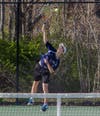 Clearly, Matt Jacobs, our Freshman First Singles stalwart is the locomotive that drives these young men to the level of achievement you see. There is an atmosphere of confidence that surrounds their play. It is engendered and supported, at least in part, by Matt's work ethic and the hours of practice, (special thanks to his parents), that lead to his consistent performance on court.