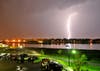 A sudden flash of light, long and sharp, crashed across my view from somewhere high up in the clouds as it pierced my view down into the ocean, blinding me for a moment. Then the crack, so loud that Howard, our cat, ran at high speed to hide under the couch. Our visiting neighbor put his hands over his ears and scurried out of the room, but not out of hearing, into the other room, as if he had never heard such a noise before. Another flash of lightning followed by its crack, boom, and bang forced me to back away from the window as if it were going to get me.