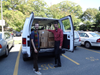 You see, while these folks with a passion for knitting will never abandon their love of creating gifts for family and friends, they also embrace the opportunity to help those in need. Most recently, Sally Hanley, a Wednesday regular, asked the group if they would be interested in knitting items for the men and women served by the New England Center for Homeless Veterans. The group responded enthusiastically, donating over 300 (!) scarves. Stephen Cunniff and CJ Beck from the NECHV happily filled their van with 14 cartons of beautifully knit scarves, hats and mittens to take back to the center. There, the creations will be packaged by volunteers and presented to residents during the holidays.