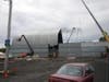 In three weeks a Phillips Park corner has gone from a cleared field to a foundation of shipping containers to a high-rise, steel-frame tented building.