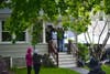 Residents in the neighborhood of flowers, neat lawns and families watched from windows, porches and sidewalks.