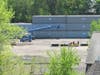 Stacked container cars will form a building for the set, enclosing the pool which will be set off the ground.