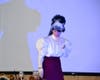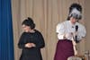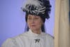 Parnes, a historical impersonator from MIllis, wore a white leg of mutton blouse, a plumed hat, pointy-toed boots and lace gloves.