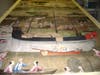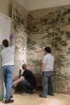 Webber was hired to do the restoration. Over the next 9 months, she headed up an arduous process that involved peeling off old backing, re-applying layers of new paper, retouching tears, fold marks, thinning, punctures, as well as degradation of all sorts, and repainting sections.