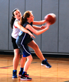 Things changed early, St. Joseph came out flying. They scored on their first four possesions to cut the lead to 19-18. With the control of the game on the line, Maggie Barden came through with another foul line jumper to push the lead to 21-18 with 10:38 on the clock. Mary Miles then came up with a defensive rebound and took it end to end to make it 23-18. Miles continued the run with an alley oop pass to Faye Parker for a 25-18 lead, and then scored again to make it 27-18. Miles had her hand in stopping the Medford comeback with 6 steals and constant defensive pressure. On defense, Faye Parker was preventing St. Joseph from even getting a shot off. Parker blocked 7 shots down the stretch. Meanwhile, Fiona Herring in her first game of the year after an injury, tossed in three points. Sasha Balchenkoff finished the game off with a late basket as St. John's pulled away to take a 45-27 win.