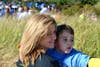 Seven-year-old Kyle rested in his mom's arms, his head on her shoulder.