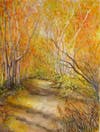 She photographed the same paths and pond throughout the year. She then reinterpreted those photographs in watercolor and encaustic.