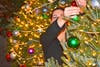 Ornaments that decorate two Christmas trees outside the Red Rock Bistro represent food for the hungry.