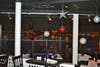 Inisde the warm bar, table tents advertise the fundraiser, triangular folded papers saying proceeds from the ornament sale go to My Brother's Table.