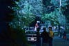 In the distance, set lights gave a garage an enchanted look.