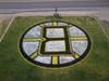 The front lawn of his 1063 Shawsheen St. home is adorned with a 25-foot wide Bruins' logo.