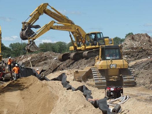 This summer, site work has progressed with the construction of the vertical barrier (subsurface wall) between the southern lobe of the landfill and Sutton Brook. Waste on the Southern Lobe has been regraded in preparation for capping. A large wetland replication area has been prepared for planting.