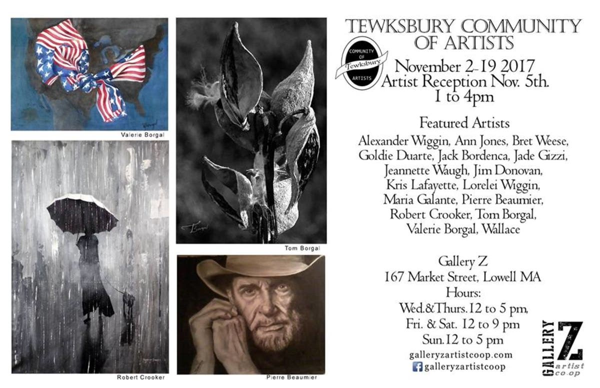 TEWKSBURY, MA -- More than 15 artists from Tewksbury will be featured in "Tewksbury Community of Artists," a show running from November 2 through November 19 at Gallery Z in Lowell. The show highlights the work of local artists working in a range of mediums. The Gallery will host an artist reception on November 5 from 1 - 4 pm at the gallery, which is located at 167 Market Street in Lowell.