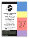 The Tewksbury Community of Artists 17th Annual Art Festival will take place this Saturday, October 23, from 10 a.m. to 3 p.m. at the Wynn Middle School. Participants include, members and non-members as well as students' kindergarten through grade 12, who created pieces between September 1, 2009 and October 9, 2010.