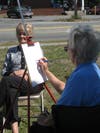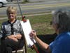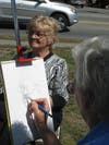 Artists had to hang onto their pieces on Saturday afternoon as the wind blew through the grass at the Tewksbury Methodist Church in Tewksbury during the Tewksbury Community of Artists Pumpkin Arts Festival. The chairwoman of the Community of Artists, Marvis Willegal, wasn't complaining though, she was enjoying the day and had even sold a few pieces of her work.