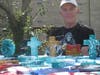 Another member of the Community of Artists, and a staple at the arts show around the area, was Peter Foy. Foy creates hand carved cats and dogs out of wood, but is most sought after for his beautiful creations he carves out of bowling balls. The vibrant colors from the balls create beautiful sleek and colorful pieces, which he carves into crosses, angels, cats, shamrocks and much more.