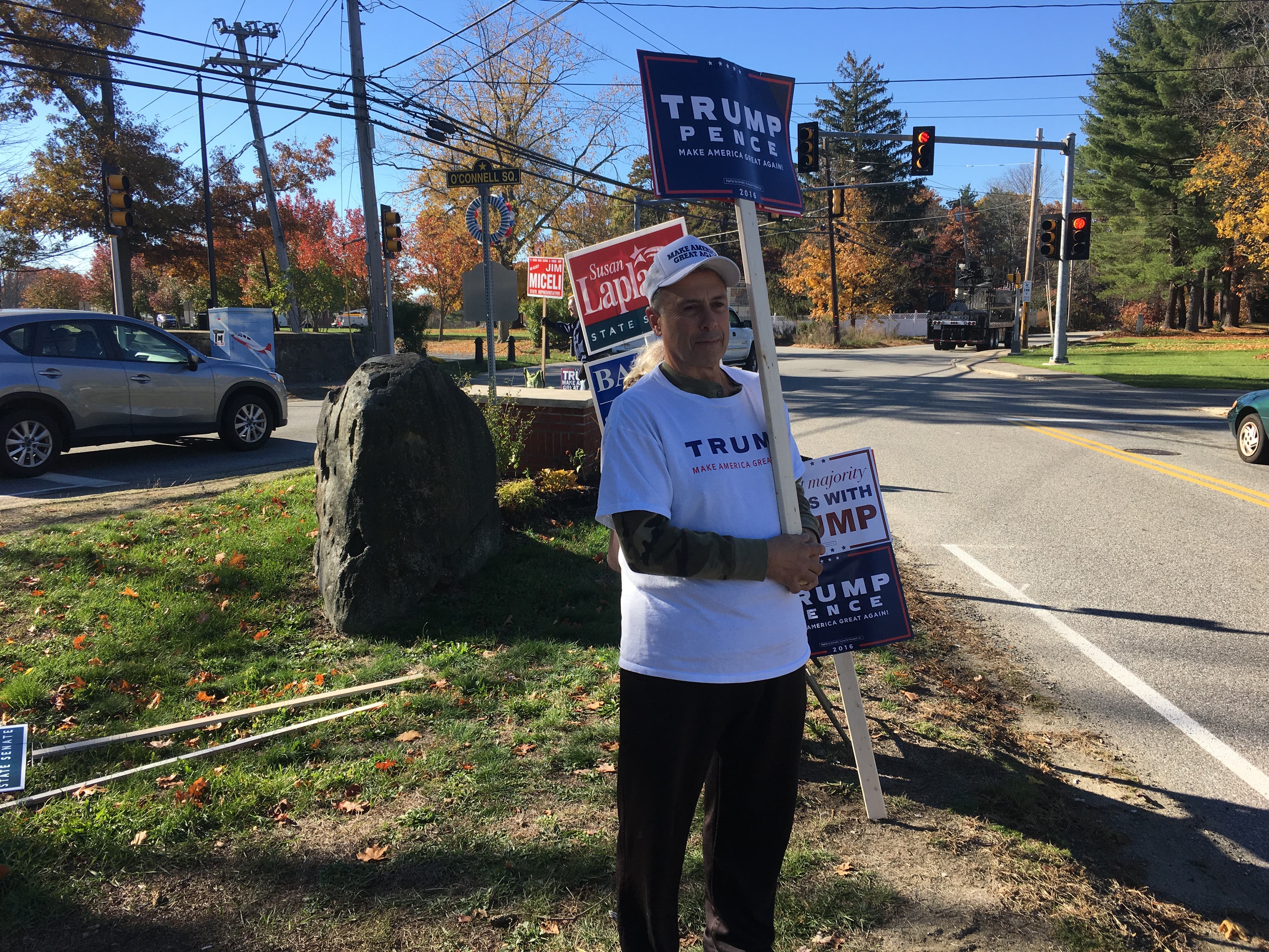 10:10 a.m.: A lack of faith in the government drove self-employed Tewksbury resident David Lavita, 62, to campaign in favor of Republican nominee Donald Trump outside of the Tewksbury Senior Center Tuesday morning.
