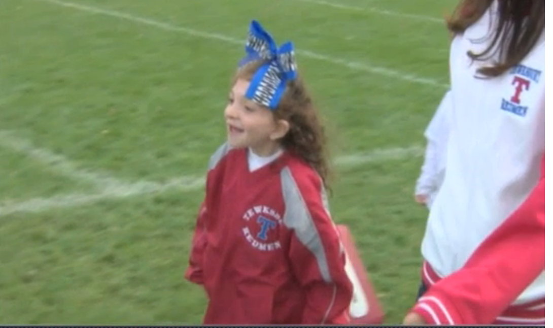 Tewksbury Second Grader Cheering on Youth Football Teams Despite Medical Obstacles