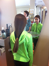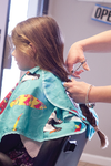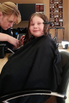 Fast forward 1 1/2 years and off we went to see Anjean Murphy, owner of Salon Murchu in Methuen. Seeing Elisabeth sitting in the salon chair with her 10 1/2" braid ready to be cut off was a bittersweet moment. I was a touch sad to see her long hair go but pleased that she was willing to do something that could help another child.