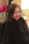 Elisabeth's 7 year old cousin Kylie from Billerica chose to donate her beautiful hair for the cause around the same time. With the help of Kate Arpin of Dani Salon in Burlington Kylie donated 11 1/2" of wonderfully thick hair.