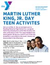 Our teen futsal (indoor soccer) league starts this Friday at 8pm and we're offering MLK, Jr. Day teen activities on Monday 1/19.