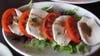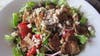 Next, we shared a second appetizer, Mozzarella Caprese ($6.95), the slices of fresh mozzarella layered between slices of red tomatoe and basil, along with a good-sized Rustico Salad ($6.95) of tossed greens with walnuts, red onion, blue cheese, and flecks of more crispy eggplant. By now, we were starting to feel full.