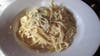 Then our lunches arrived. Spaghetti Carbonara, one of my favorite pasta dishes, was my choice for lunch. The long spaghetti nested in a large white bowl, swirled and coated with a creamy egg sauce and small chunks of pancetta. I added sprinkles of freshly grated parmesan cheese from a jar on the table. The portion didn’t look overwhelming, but I found I couldn’t finish it. (Good. Something leftover for lunch the next day.) My friend’s Chicken Pepper Panini ($7.95) came with green, not red, roasted peppers and a side pasta salad. Again, it was good, but she could only eat half.
