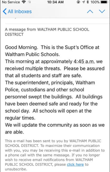Waltham, Belmont School Bomb Threats: Police