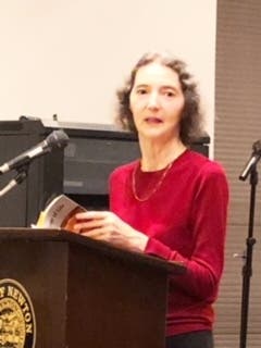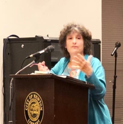 Next in the poetry reading, Doug Holder introduced Marguerite Guzman Bouvard. She is a local author and poet with a passion for human life and respect. Her long list of local service includes her time as a professor of Political Science and Director of Poetry Workshops at Regis. In addition to her writing, she is now a Resident Scholar at the Women's Studies Research Center at Brandeis.