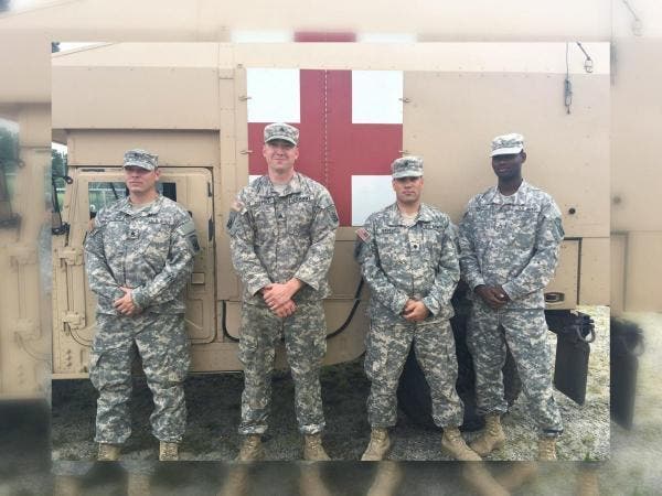 The rescuers, from left: Staff Sgt. Dana Francis, Sgt. Tommy Coppola, Spc. John Shively and Pfc. Aaron Amardey-Wellington. Photo by Army Capt. John Quinn, Massachusetts Army National Guard, used with permission