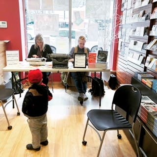 On Saturday afternoon, Poetry on Demand was procured at Belmont Books. Poets Whitney Scharer and Allison Adair were on hand for personalized poem requests. Children were as enthralled by the "old fashioned" typewriters used as they were by the prospect of their ideas becoming instant poetry!