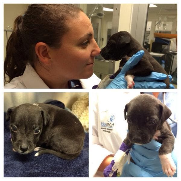 The puppy, an American pit bull terrier, was initially taken to Lawrence Animal Control and then PittieLove Rescue, where she was named “Pocket.” However, after she repeatedly vomited and had diarrhea, potentially life-threatening conditions for a puppy separated from her mother, she was taken to BluePearl Veterinary Partners in Waltham on Wednesday, where she is in the intensive care unit.