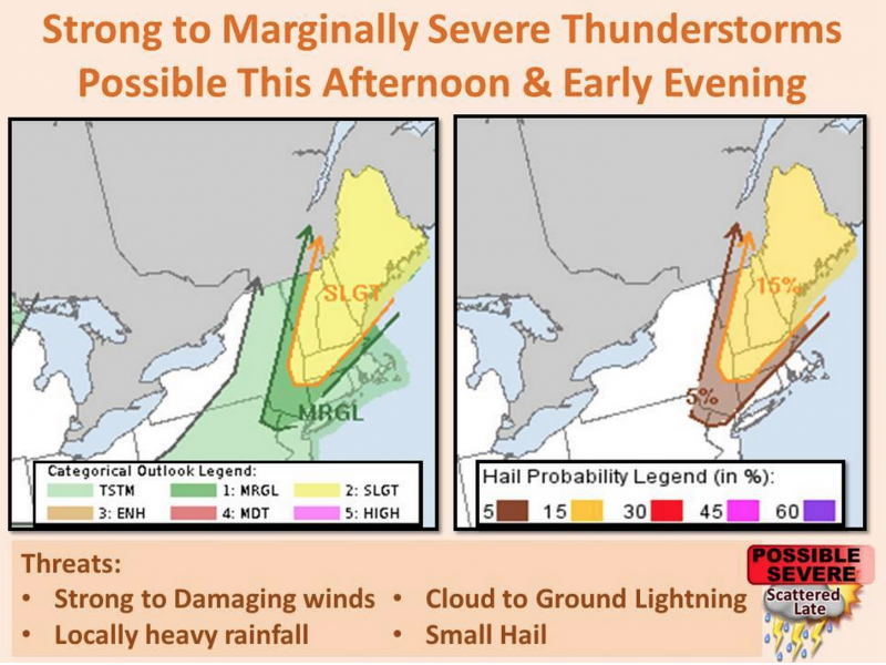 The National Weather Service has issued an alert Thursday morning about the possibility of strong to severe thunderstorms across much of southern New England Thursday afternoon and lasting for several hours into the evening.