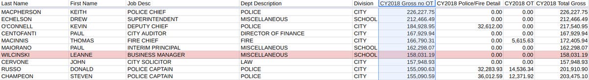 And once again, the only woman to crack the top 10 highest base salary was Leanne Wilcinski, a school business manager for the superintendent's office. She had a base salary of $158,031. 19 But she landed at No. 39 when it came to gross pay, which was the same.
