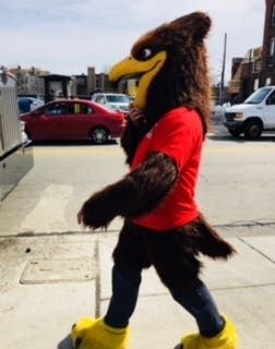 The Hawk mascot (Richy Schwalm) supported the team all season.