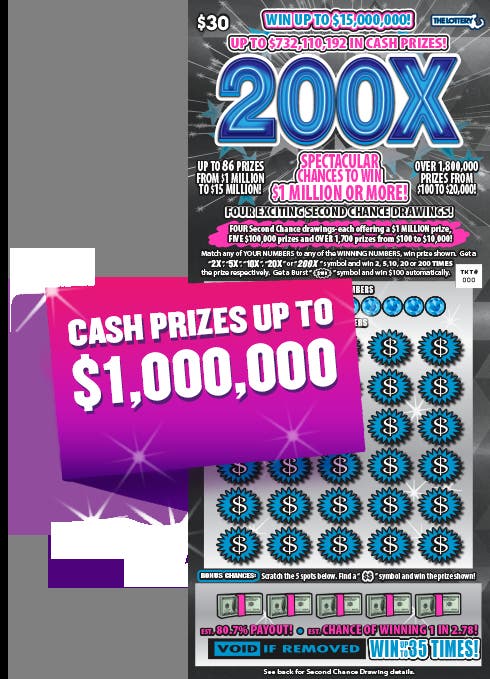 Two $15,000,000 prizes and 46 $1,000,000 prizes are still available in the $30 “200X” instant game, according to the state lottery folks.