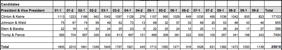 A breakdown of the presidential race and hotly contested ballot questions by precinct.