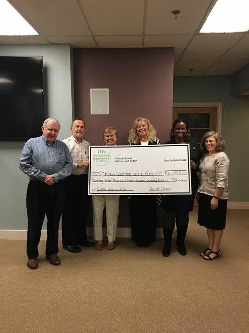 The Massachusetts Coalition for the Homeless received a check for $24,379, using funds raised from RTN's Walk Home event in June.