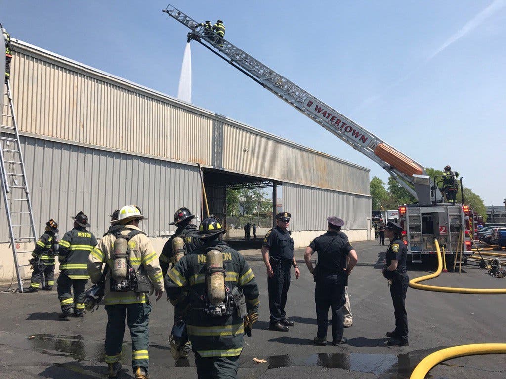 Olympia Moving & Storage lists 17 Bridge Street as its address, but its building neighbors the vacant warehouse that caught on fire. Watertown Deputy Fire Chief Rob Iannetta told the Watertown TAB the warehouse was empty.