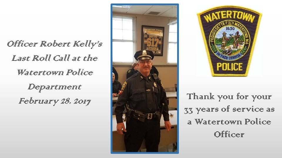 WATERTOWN, MA – Watertown police officer Robert Kelly saw his "last roll call" Tuesday. Kelly retired from the force after 33 years with the Watertown Police Department.