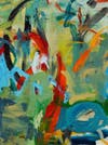 Clements’ works are primarily in acrylic, although most paintings also include some collage elements such as swatches of newspapers, cardboard, photographic prints, and pieces of fabric. Her latest works, she says, are derived from her emotions. A year and a half ago, her father-in-law passed away and days later her son’s closest friend died in a car accident at age 17.