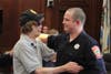 Brian received congratulatory handshakes from several fellow Newton firefighters and members of the Watertown Fire Department.