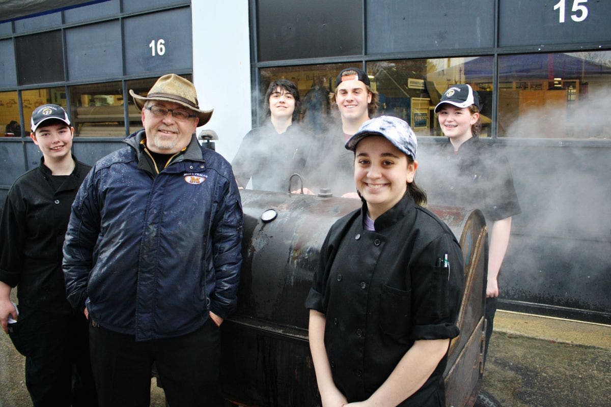 Minuteman Cooks Up Authentic BBQ. Superintendent Dr. Edward A. Bouquillon stands in front of his BBQ smoker, flanked by Culinary Arts students Natalia Gorman of Belmont (on the left) and Allison Sanzio of Stow (on the right). Behind the smoker (left to right) are Chris LeBlanc of Watertown, Christian Ciaramaglia of Everett, and Taryn OβConnor of Bolton.