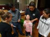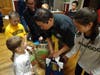 Lee and his children met with Milford Youth Center families and handed out packages at the Marchegiano Club, 60 Meade St., Milford.