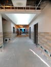 For instance, the science classrooms in the academic building feature lab tables, and the choral and band rooms in the common building have acoustic panels suspended from the ceiling. Tile work has also been completed in some restrooms and hallways.