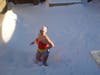 Taken by her husband, Mark Howley, Elaine, in her backyard on Columbus Ave., picked a Union Jack suit for Tuesday while the storm raged on. She opted for the Wonder Woman suit on Wednesday after the snow had settled a bit.