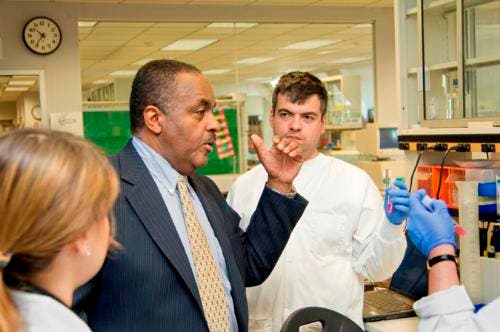 Photo released with the 2011 announcement that Bruce Jackson would receive a Presidential Award for Excellence in Science, Mathematics, and Engineering Mentor from President Barack Obama.