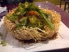My entrée was an interesting presentation of crispy fried egg noodles served with a choice of seafood, chicken, beef, pork, tofu or vegetables. The crispy fried egg noodles reminded me of a bird’s nest! I had options for the seafood and went with scallops and shrimp. The scallops were perfectly prepared as were the shrimp. The vegetables were crisp…not raw…really nicely prepared.